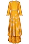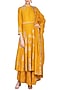 Featuring a mustard kurta in chanderi silk base with dabka and pitta hand embroidery. It is paired with matching brocade gharara pants and dupatta.