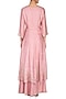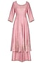 Featuring an onion pink kalidar kurta in silk base with dabka pati embroidery. It is paired with a matching gharara in murshidabad silk base and aqua dupatta in tissue base.