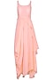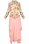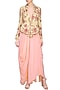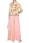 Featuring a powder pink drape jumpsuit in crepe base. It is paired with matching jacket in georgette base.