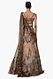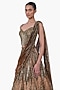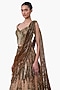 Featuring an antique gold lehenga saree in net base with embellishment. It is paired with an embroidered corset blouse having a sculpted neckline and a fluid drape pallu. Accentuate it with statement chandelier or diamond earrings, an embellished clutch and strappy metallic heels for a graceful ensemble, ideal for engagement ceremonies, sangeet nights, or elegant evening celebrations.
