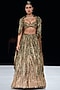 Featuring an antique gold lehenga in nylon and tulle base with bugle beads and crystal embroidery. It is paired with a blouse and a cape. Accentuate it with polki or silver jewellery, embellished heels and a clutch for a bridal look, Perfect wear for your wedding, sangeet or engagement ceremony.