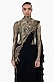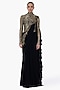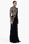 Featuring a black and gold gown saree in georgette and lace base with a high-neckline embroidery, elongated sleeves and pleated drape. Accentuate it with sculpted metallic earrings, a statement cuff bracelet, and a structured mini bag for a stylish ensemble, ideal for cocktail receptions, formal galas or upscale evening events