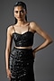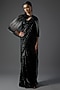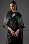 The ravishing Black Draped Saree by Gaurav Gupta is a masterpiece crafted from polyester sequins. It is paired with a blouse and a cape. This enchanting piece features intricate detailing that elevates your evening cocktail look. Embrace the night in style with dazzling silver jewellery, sleek stilettos, and a chic clutch to complete your glamorous ensemble.