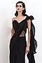 Featuring a black corset gown saree in rayon georgette base with ruffled drape. Embrace the cocktail soiree in style with dazzling silver jewellery, sleek stilettos, and a chic clutch to complete your glamorous ensemble.