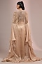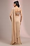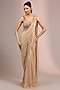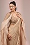 This Champagne Draped Saree by Gaurav Gupta is crafted in rayon georgette, designed with lustrous gold sculpted accents. It is paired with a blouse and a cape. Style it with bold jewellery for a statement finish. Complete the look with sleek heels to exude effortless glamour.