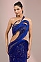 This Electric Blue One-Shoulder Gown by Gaurav Gupta is crafted in nylon, tulle and knit designed with lustrous gold sculpted accents. Intricate detailing enhances its allure, making it a perfect pick for evening cocktails. Pair it with bold jewellery for a statement finish. Complete the look with sleek heels to exude effortless glamour.