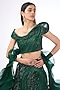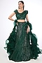 This elegant emerald green lehenga by Gaurav Gupta is crafted in a polyester sequins base. The blouse that beautifully accentuates feminine curves. The set includes a ruffled dupatta, while intricate sequin work adds a touch of glamour with modern sophistication. Style it with bold jewellery and heels for a timelessly chic look.
