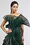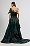 Gaurav Guptas Emerald Green Off-Shoulder Gown shimmers in polyester sequins, elevated with striking gold sculpted detailing. The intricate craftsmanship adds a touch of sophistication, making it ideal for cocktail soirees. Bold jewellery complements its dramatic flair. Finish with heels for a truly glamorous ensemble