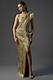 Gold Polyester Crepe Sculpted Gown