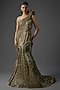 Gold Polyester Sequin Sculpted One Shoulder Gown