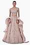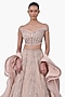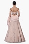 Featuring a haze champagne flared lehenga in georgette base. It is paired with an off-shoulder embroidered blouse and a dupatta. Accentuate it with statement chandelier or diamond earrings, an embellished clutch and strappy metallic heels for a graceful ensemble, ideal for engagement ceremonies, sangeet nights, or elegant evening celebrations.