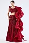 Gaurav Gupta presents a lava red ruffled cape in silk organza base. Style it over a gown or an embellished dress for red-carpet events, pre-wedding ceremonies or intimate parties.