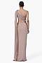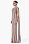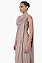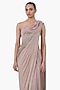 Featuring a light champagne gown saree in chiffon base with an asymmetric drape. Accentuate it with sculpted metallic earrings, a statement cuff bracelet, and a structured mini bag for a stylish ensemble, ideal for cocktail receptions, formal galas or upscale evening events