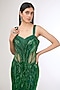 Gaurav Guptas Malachite Green Gown shimmers in nylon, tulle and knit elevated with striking sequins detailing. The intricate craftsmanship adds a touch of sophistication, making it ideal for cocktail soirees. Bold jewellery complements its dramatic flair. Finish with heels for a truly glamorous ensemble.