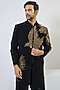 Featuring a black indowestern in velvet base. It is paired with pants. Style it with a pair of loafers and a watch for a wedding or sangeet ceremony, exuding traditional charm and elegance.