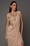 Featuring a nude gown saree in silk base. Accentuate it with statement earrings, a metallic clutch and block heels for a regal look, perfect for cocktail nights or glamorous gala events.