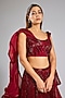 Featuring a red lehenga in rayon, georgette and woven base. It is paired with a blouse having an attached trail. Style this designer lehenga with zircon danger earrings, an embellished clutch and high heels for a complete bridal look, perfect for a wedding, cocktail or reception ceremony.