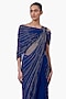 Featuring a royal blue draped gown saree in georgette base with linear embellishment. Accentuate it with sculpted metallic earrings, a statement cuff bracelet, and a structured mini bag for a stylish ensemble, ideal for cocktail receptions, formal galas or upscale evening events