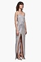 Featuring a silver ash strapless gown in satin base with embroidery and a front slit. Elevate your evening look with radiant accessories such as bold rose gold earrings, strappy heels, and a compact clutch for effortless glamour.