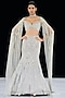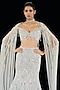 Featuring a silver mermaid lehenga in nylon and tulle base with embroidery. It is paired with a blouse and an embroidered cape. Accentuate it with swarovski or zircon jewellery, embellished heels and a clutch for a bridal look, Perfect wear for your wedding, sangeet or cocktail ceremony.