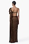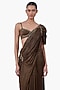 Featuring a vintage rust saree in foiled chiffon base with a gathered shoulder draped. It is paired with a blouse. Accentuate it with sleek diamond studs, heels and a structured clutch for a stylish ensemble, ideal for reception evenings, cocktail parties or formal celebrations.