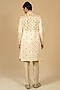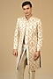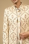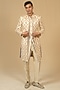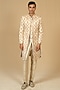 Featuring an ivory sherwani in pure chintz base with print and hand embellishment. It is paired with pants. Accentuate it with a coordinated stole, a statement brooch and classic mojaris for a regal ensemble, ideal for wedding ceremonies, engagement functions or grand festive celebrations.