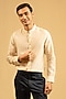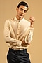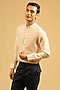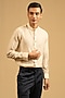 Featuring a royal beige shirt in silk chanderi base with mandarin collar and meenakari buttons. Style it with pants and shoes for a casual or office look.