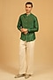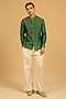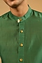 Featuring a royal green shirt in silk chanderi base with mandarin collar and meenakari buttons. Style it with pants and shoes for a casual or office look.