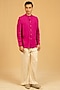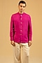 Featuring a saturation pink bush coat bandhgala jacket in linen base with zardosi work. Accentuate it with tailored trousers, a crisp shirt and polished loafers for a refined ensemble, ideal for formal gatherings, evening events or smart celebratory occasions.