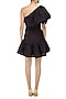 Featuring a black one shoulder dress in organza base with bubble frill hem and ruffle detailing on the neckline.