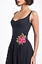 Featuring a black midi dress in cotton base with a sweetheart neckline, u-shape waist and floral detail. Style it with hoop earrings and block heels for evening wear or cocktail party.