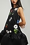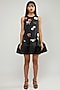 Featuring a black short dress in duchess satin base with embroidery.