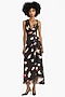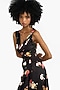 Gauri and Nainika features a black midi dress in satin base with a twisted cowl neckline, an asymmetric hem and bask posy print. Style it with bold earrings, metallic heels and a statement clutch for a striking look, perfect for parties or night events.