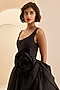 Featuring a black off-shoulder midi dress in cotton base with asymmetric hem, u-neck, side drawstring and floral detail. Style it with hoop earrings and block heels for a brunch date or sundowner.