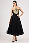 Featuring a black strapless midi dress in tulle base with embroidery. Accentuate it with statement jewellery and heels for a brunch or a sundowner.