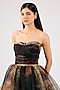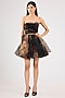 Featuring a black strapless mini dress in tulle base with print. Accentuate it with statement jewellery and heels for a brunch or a sundowner.