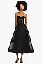 Gauri and Nainika features a black strapless corset midi dress in tulle base with a lace detailing. Style it with pearl stud earrings, block heels and a statement clutch for a striking look, perfect for cocktail evenings, receptions or festive occasions