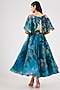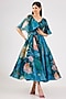 Featuring a blue dress in organza base with print, flutter sleeves and a shawl collar. Accentuate it with statement jewellery and heels for a brunch or a sundowner.
