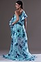 Blue Printed Organza High-Low Dress