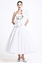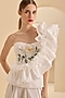 Cream Stretch Cotton Thread Embroidered One-Shoulder Ruffled Top