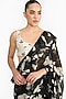 Featuring an ivory saree in chiffon and crepe base with rose print. It is paired with an embroidered sleeveless blouse. Style with polki jewellery, soft curls, and embellished heels for weddings, engagements, or festive events.