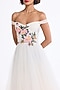 Ivory Tulle Thread Embroidered Off-Shoulder Draped Midi Dress