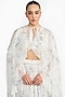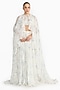 Featuring a lavender crop top in chiffon base with print. It is paired with a flared lehenga and cape. Style with polki jewellery, soft curls, and embellished heels for weddings, engagements, or festive events.