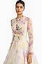 Featuring a lilac angrakha in silk organza base with print and embroidery. Style with polki jewellery, soft curls, and embellished heels for weddings, engagements, or festive events.