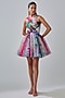 Featuring a multi-colored mini dress in tulle and mikado base. Accentuate it with dangler earrings and heels, perfect for evening soirees.