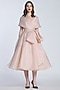 Gauri and Nainika features a nude wrap dress in organza base with a shawl collar detail. Accentuate it with statement earrings and heels for an evening look.