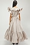 Featuring an oyster wrap dress in taffeta base with a frilled neckline. It is paired with a matching belt.