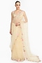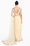 Featuring a pale yellow saree in silk organza base with embroidery. It is paired with a sleeveless blouse. Style with polki jewelry, soft curls, and embellished heels for wedding ceremony or festive events.