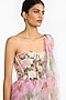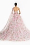 Featuring a pink lehenga saree in tulle base with rose print and an attached embroidered corset. Style with polki jewellery, soft curls, and embellished heels for weddings, engagements, or festive events.