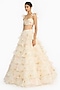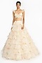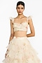 Featuring a pink and yellow layered ruffled lehenga in silk organza base with print. It is paired with a sleeveless fluted blouse. Style with polki jewellery, soft curls, and embellished heels for weddings, engagements, or festive events.
